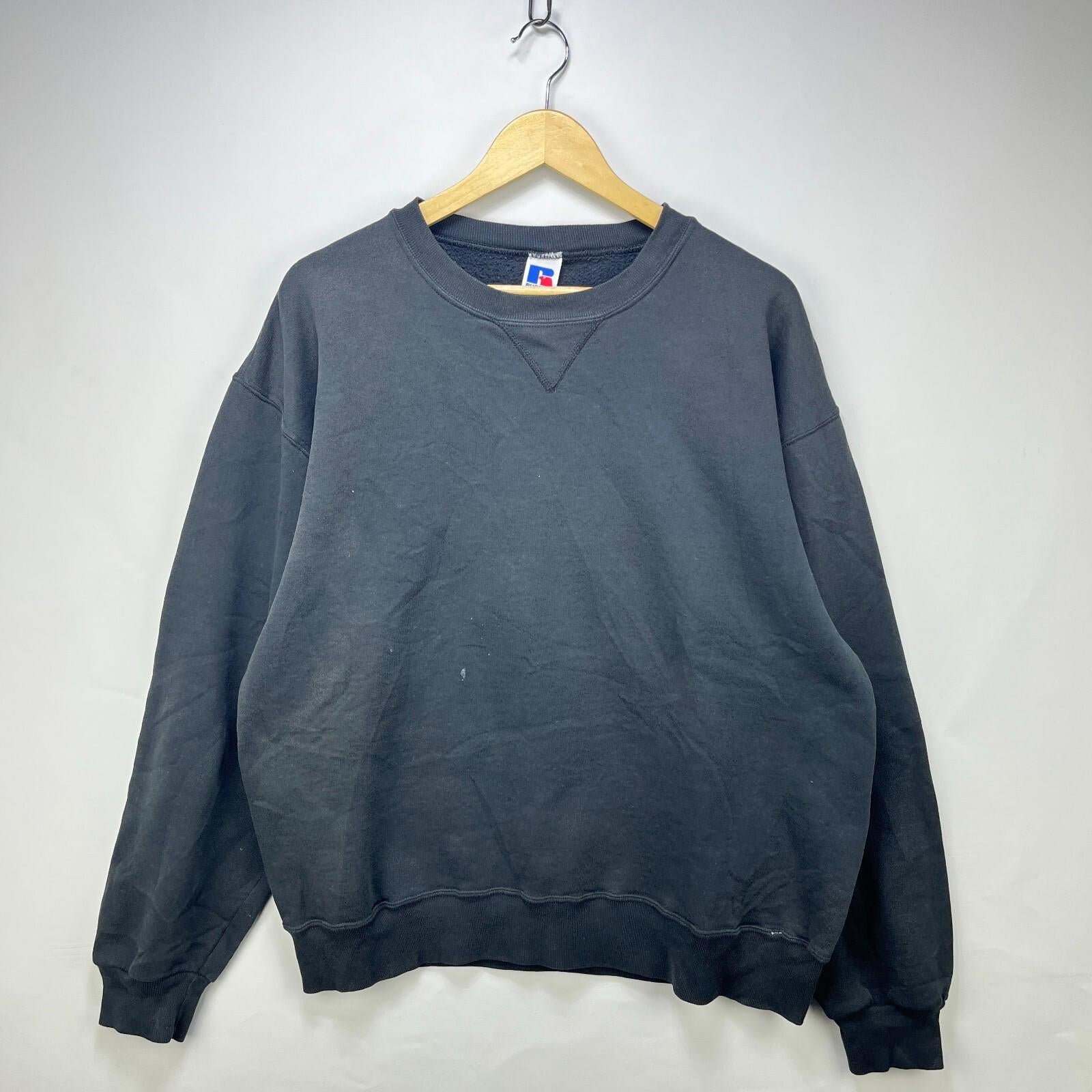 Vintage Russell Faded Blank Black Athletic Sweatshirt Large