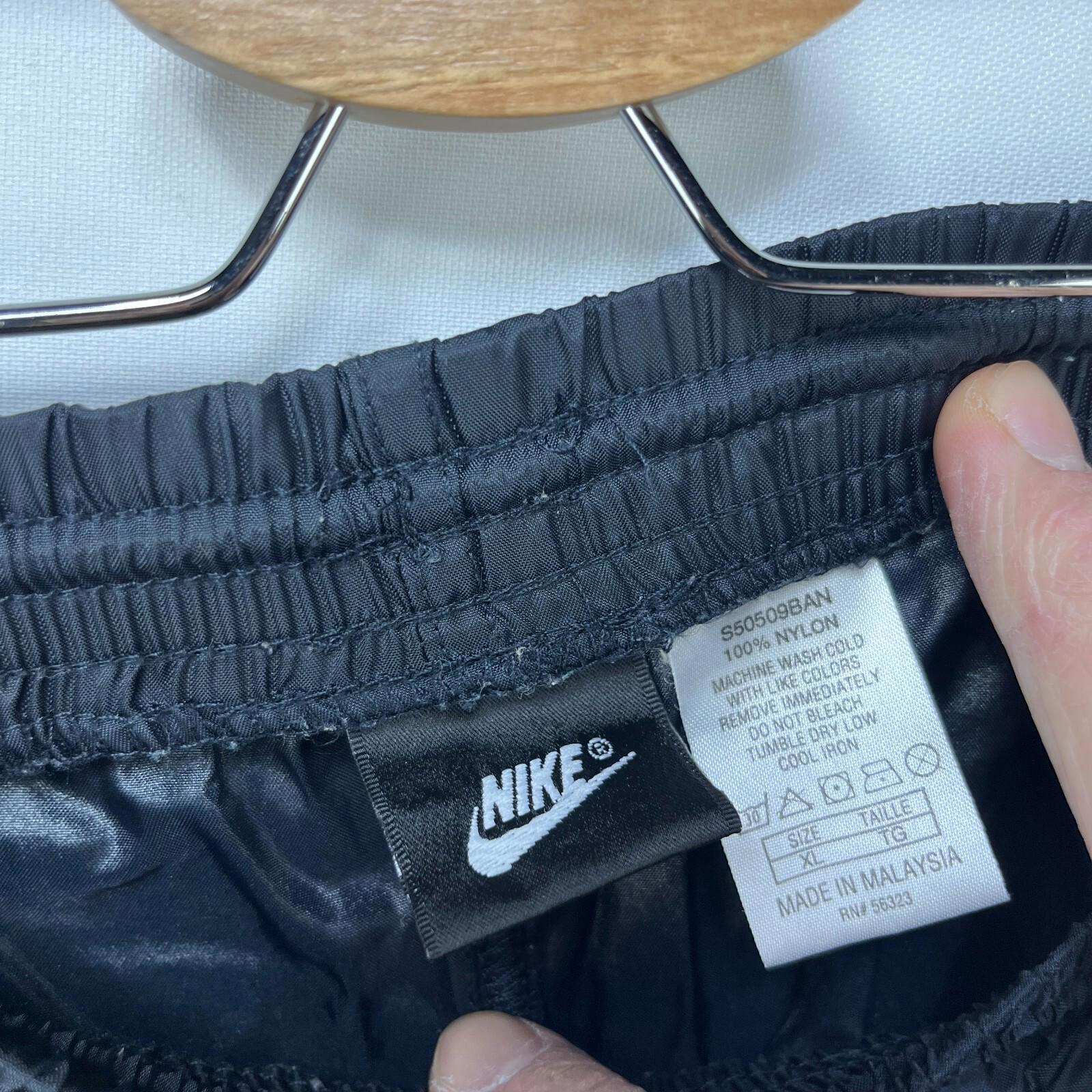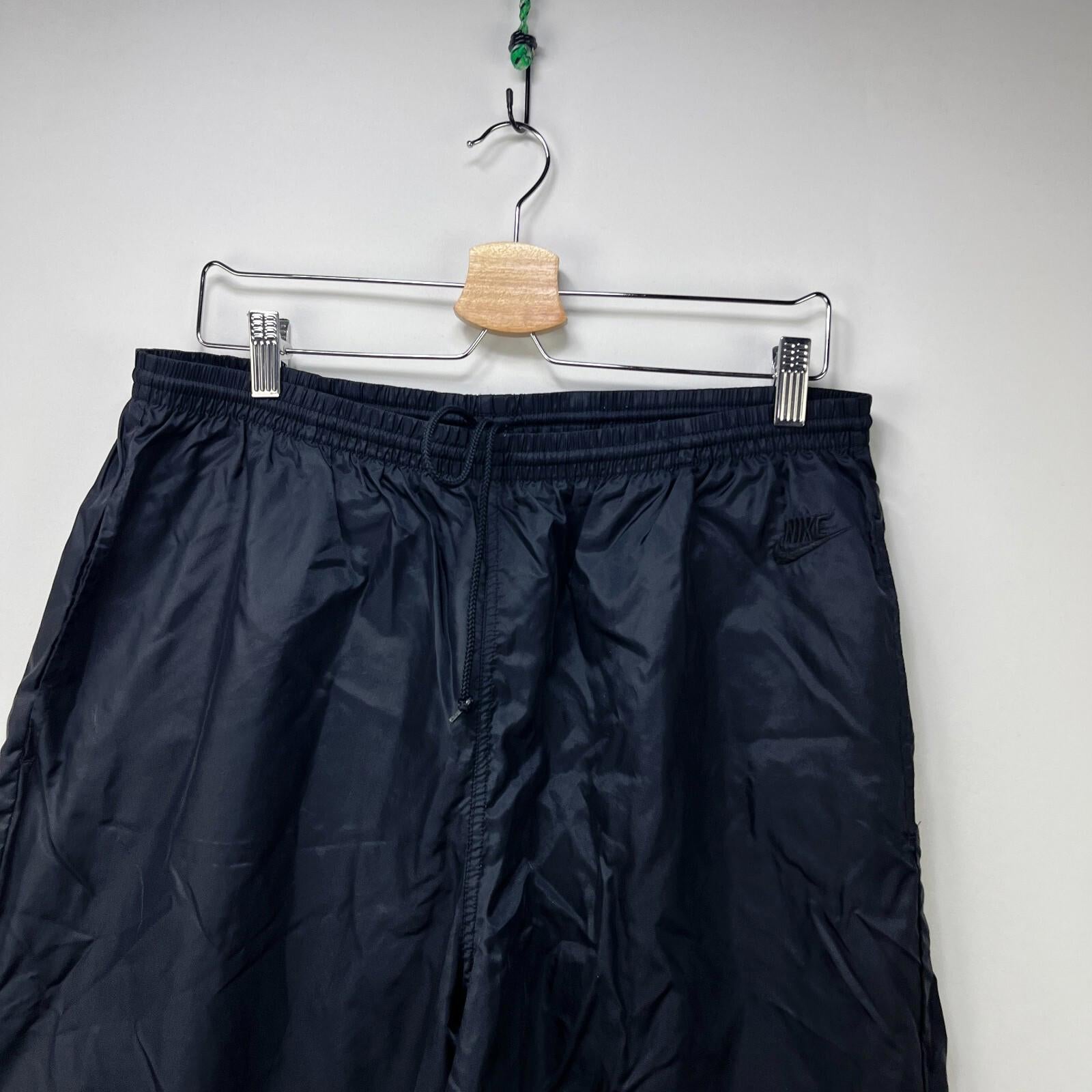 Vintage 90s Nike Windbreaker Pants Black Swoosh XL Blue