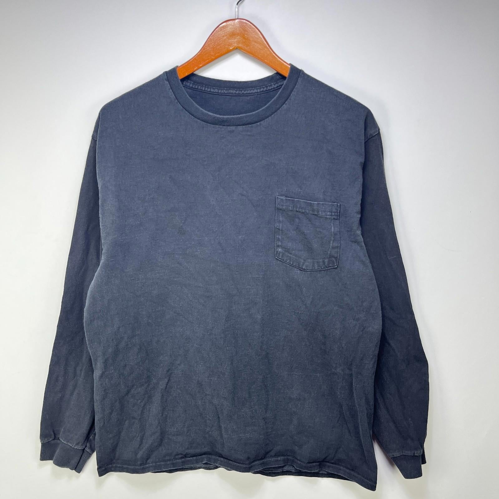 Vintage Sun Faded Blank Black Long Sleeve Shirt Large