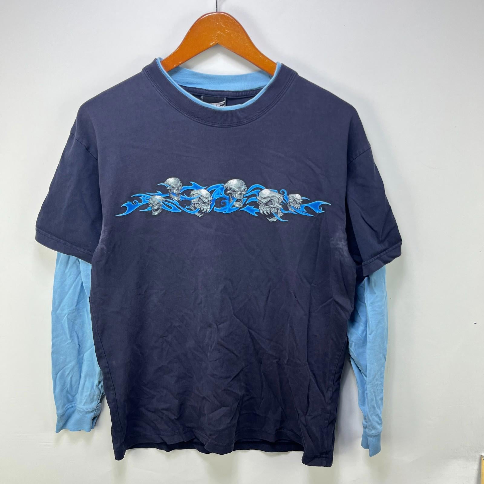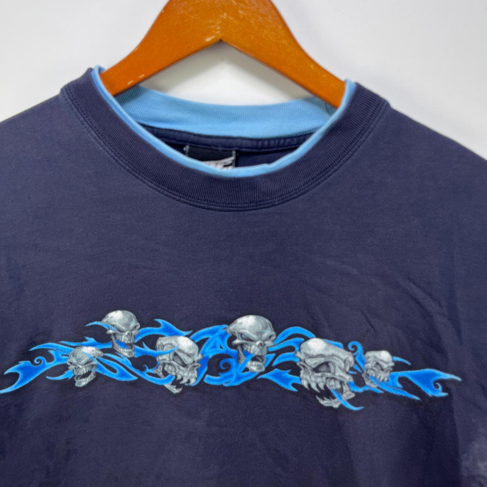 Vintage Top Heavy Y2K Skull Flames Skater Shirt Medium