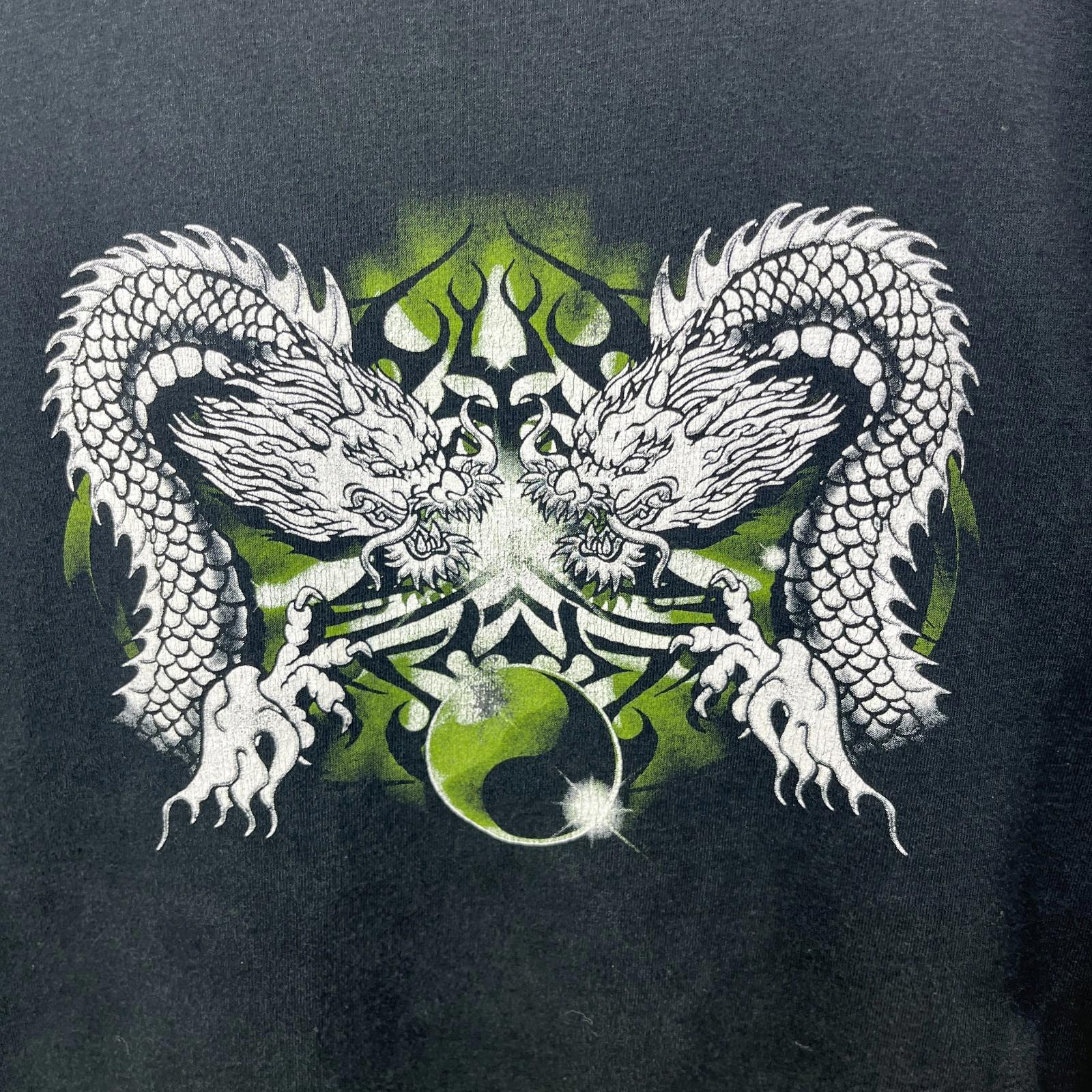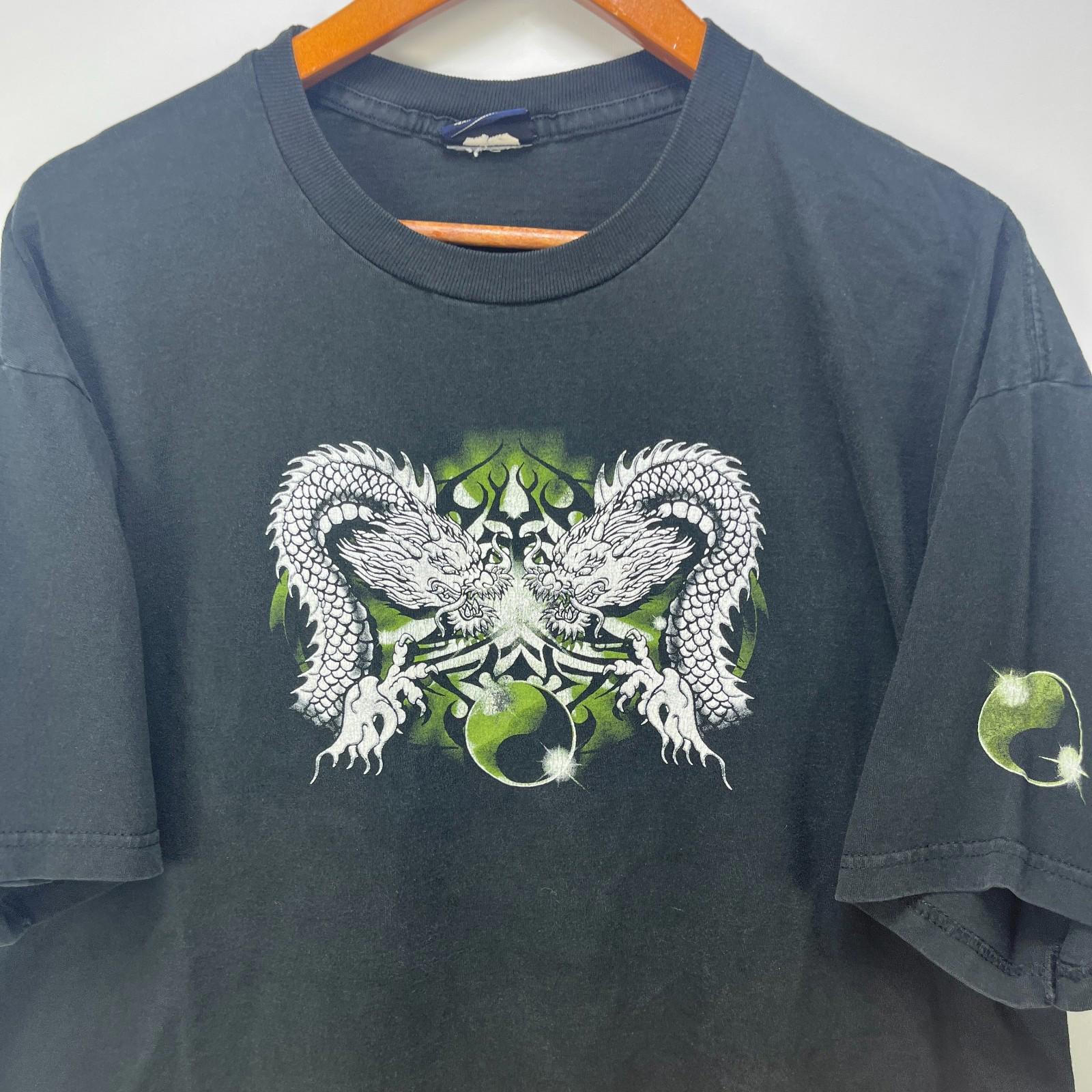 Vintage Dragon Green Flame Skater Y2K Baggy T Shirt XL 2XL